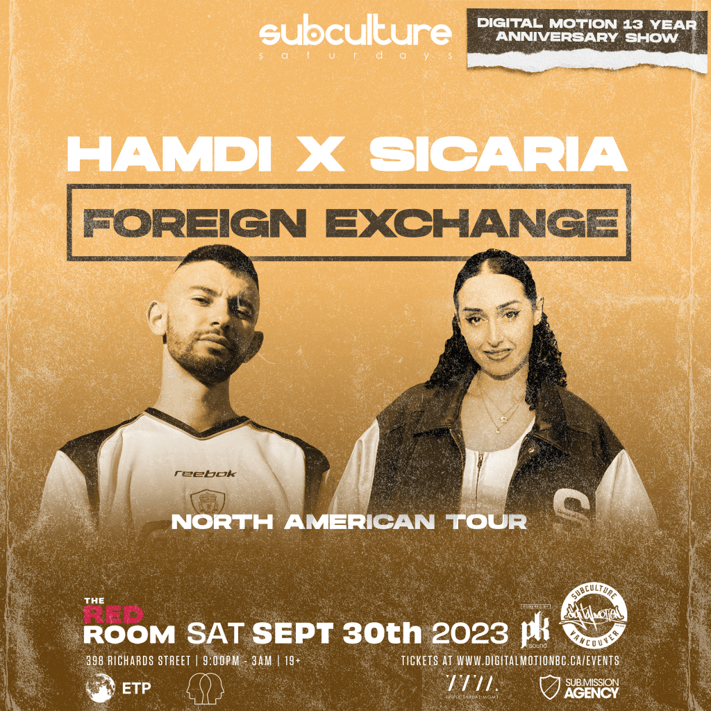 Digital Motion proudly presents – OUR 13YR ANNIVERSARY SHOW – featuring special guests on their “Foreign Exchange” North American tour: HAMDI https://soundcloud.com/hamdiofficialmusic https://www.facebook.com/HamdiOfficialMusic SICARIA https://soundcloud.com/sicariaonline https://www.facebook.com/sicariaonline with support to be announced 😉 PK SOUND in place for a proper bass & electronic music experience. Hearing protection is strongly advised. Our high fidelity, reusable Ear plugs […]