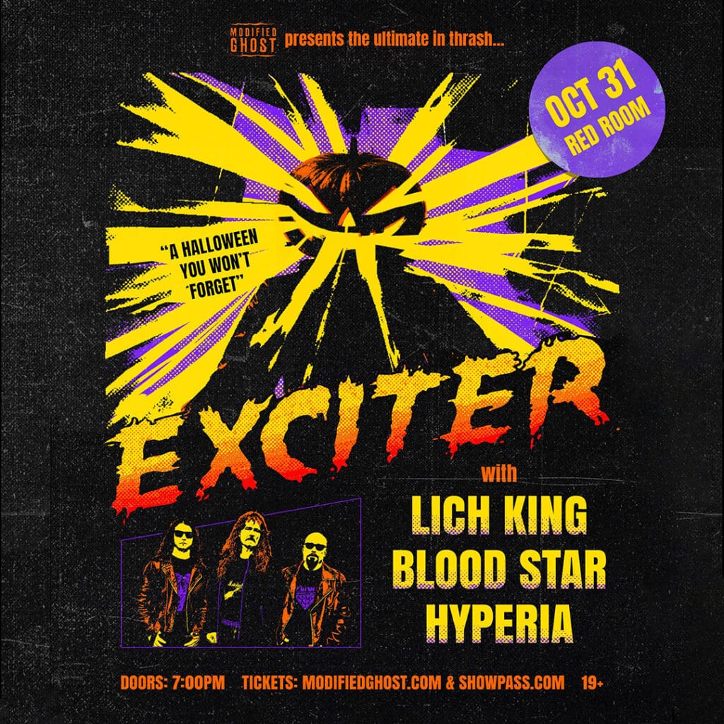 Modified Ghost Presents… 40 Years of Heavy Metal Manic! Halloween in Vancouver! EXCITER w/ Lich King, Blood Star & Hyperia Red Room 398 Richards Street **Doors at 7:00pm** – Ages 19+ EXCITER https://linktr.ee/exciterband www.instagram.com/exciterband www.facebook.com/excitercanada LICH KING www.lichkingmetal.com www.instagram.com/lichkingmetal www.facebook.com/LichKingMetal BLOOD STAR www.instagram.com/blood.star.slc www.bloodstarslc.bandcamp.com www.facebook.com/bloodstarslc HYPERIA www.instagram.com/hyperiametal www.hyperiametal.bandcamp.com www.facebook.com/Hyperiabandofficial www.modifiedghost.com www.facebook.com/modifiedghost www.instagram.com/modifiedghost