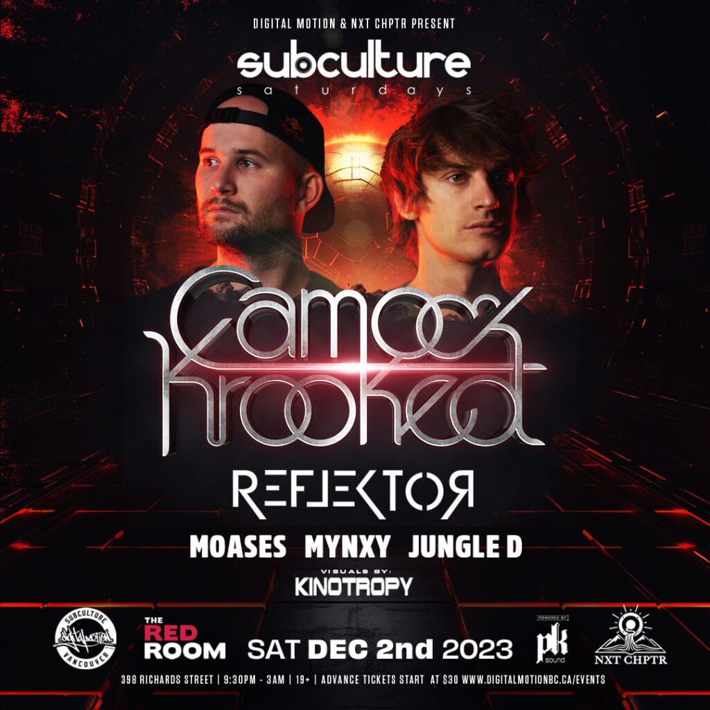 Digital Motion & NXT CHPTR proudly present a very special DnB presentation at SUBculture Saturdays! Join us for the return of the legendary electronic music production duo: CAMO AND KROOKED https://www.camoandkrooked.com https://www.facebook.com/CamoKrooked https://www.instagram.com/camokrooked Austrian duo Reinhard Rietsch and Markus Wagner, otherwise known as Camo & Krooked have quickly become one of the hottest production outfits […]