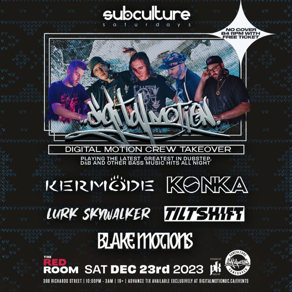 Digital Motion proudly presents NEW YEARS EVE WEEKEND // THE LAST SUBculture Saturdays of 2023 with special guests: SHLUMP MYTHM plus Chrizpy Chriz MARAH Visual experience by: INEO STUDIOS Grab your tickets now, this will be a SELL OUT show in advance! www.digitalmotionbc.ca/events PK Sound in place for a proper bass & electronic music experience. […]