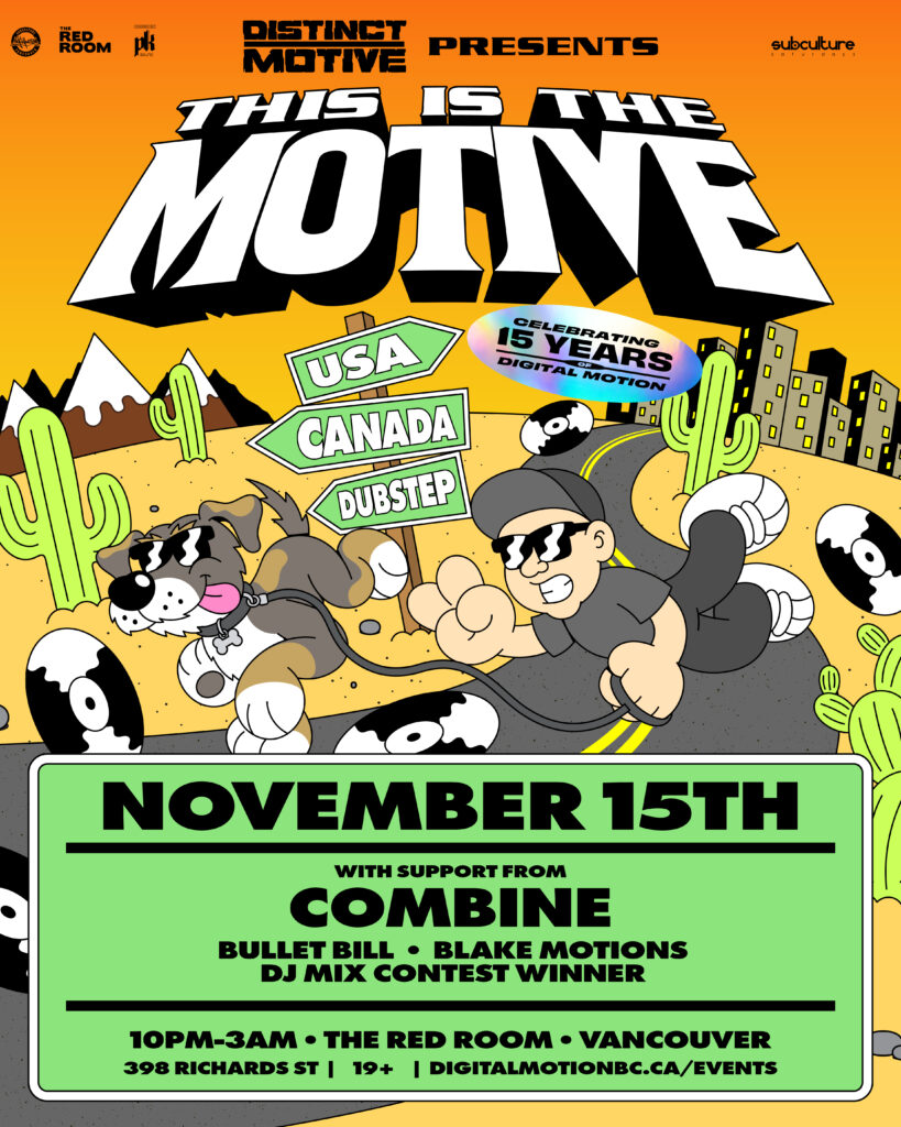 DIGITAL MOTION 15YR ANNIVERSARY SHOW: – THIS IS THE MOTIVE TOUR – DISTINCT MOTIVE [Deadbeats, DDD, Drama Club – Ontario] https://linktr.ee/distinctmotive with COMBINE [UKF / DDD / DEADBEATS / BASSRUSH] – Vancouver debut! https://soundcloud.com/ken_combine ++ support from BULLET BILL [DIGITAL MOTION] https://www.instagram.com/djbulletbill ++ BLAKE MOTIONS [DIGITAL MOTON] https://www.instagram.com/blakemotions + MIX CONTEST WINNER The notorious Red Room PK Sound system will be […]