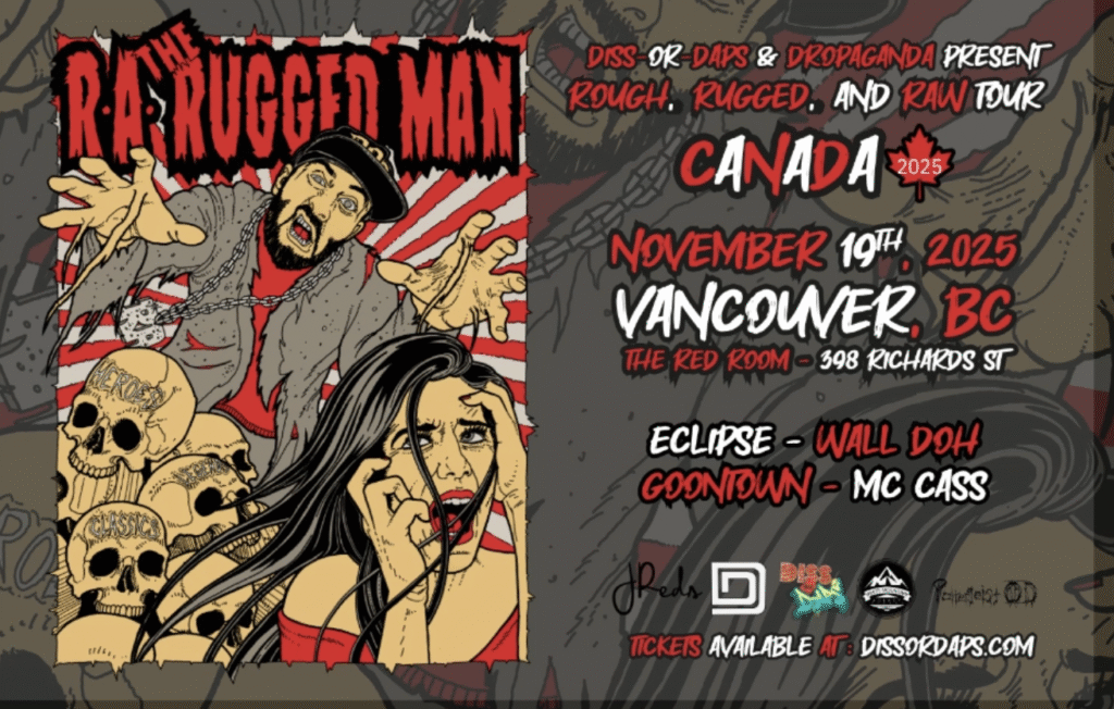 Diss-Or-Daps Presents: Season 5 – Episode 59 R.A. The Rugged Man LIVE in Vancouver R.A. The Rugged Man is one of the most fascinating figures in hip-hop history. His career spans decades, and defies simple narratives. The Rugged Man has been an up-and-coming star, an industry outcast banished and forgotten, an underground cult hero, an […]